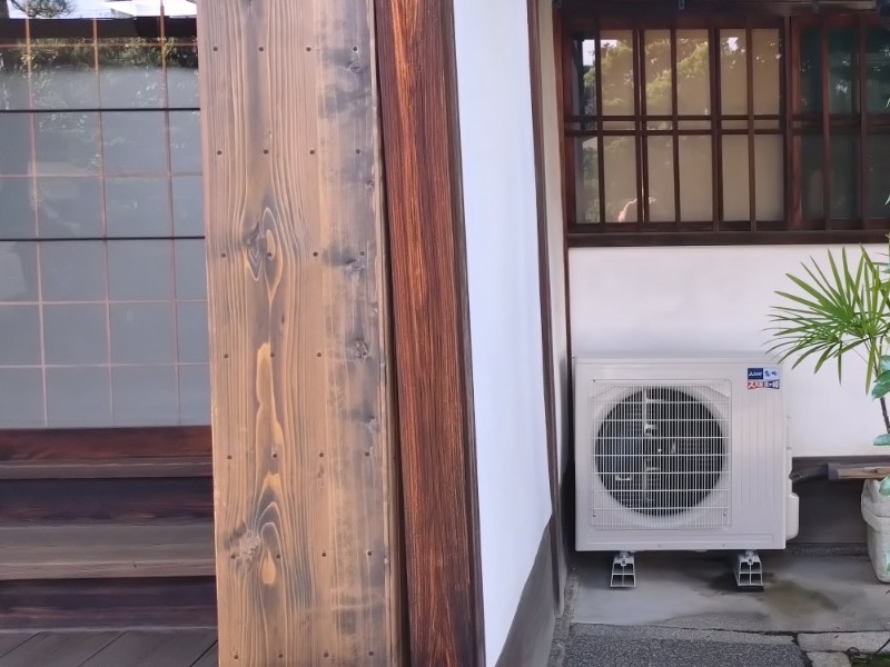 お寺にある建物は当然木造建築です。建物自体も古く、木造家屋にありがちな隙間風などもあり、マンションなどの鉄骨で機密性の高い部屋と比べるとエアコンの効きや範囲も狭まります。